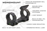 All Tier-One Monomounts are precision made, one piece scope mounts designed to withstand very heavy professional use. They are extremely accurate, lightweight and tough - the perfect rings for big bore or heavy duty use.